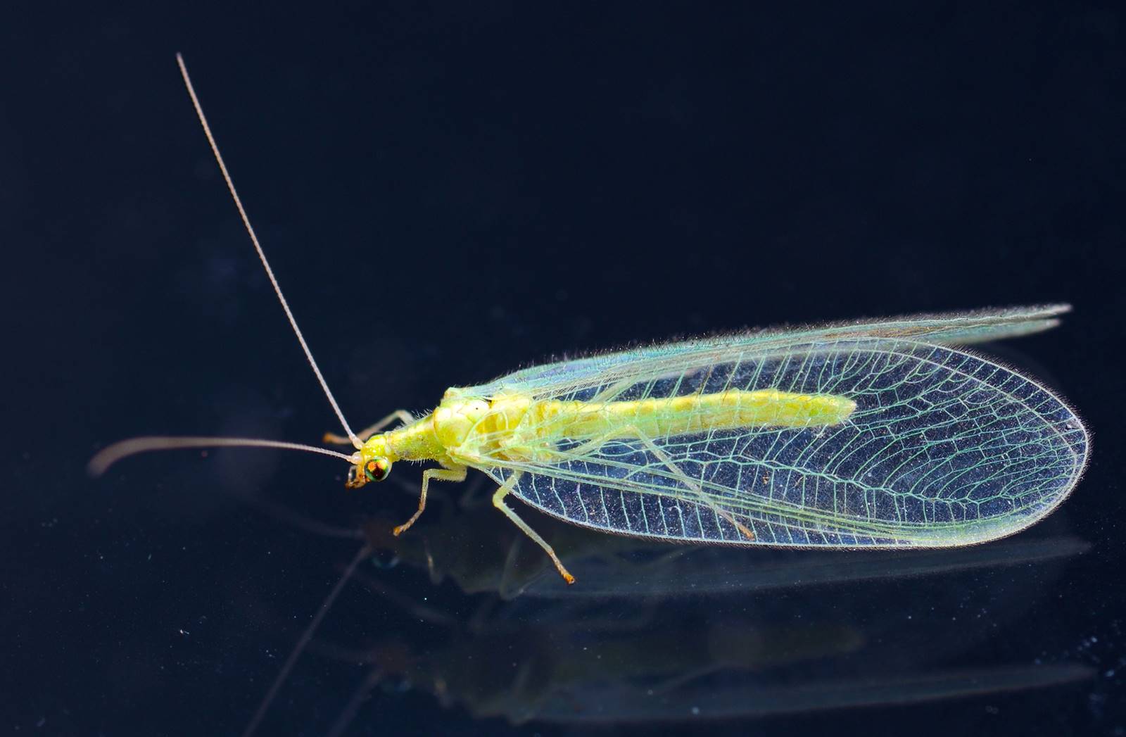 Très délicate et discrète, la chrysope a de grandes ailes irisées, un corps vert ou bleu et des yeux dorés brillants, d’où parfois son nom d’oeil d’or. L’adulte se nourrit de nectar et de pollen. Les larves sont de véritables massacreurs de pucerons, de cochenilles, de psylles, de cicadelles et aleurodes. La larve peut dévorer 300 à 500 pucerons durant son développement. C’est dans le grenier ou une remise que la chrysope se réfugie pendant les hivers rigoureux. On l’invite au jardin en lui offrant une boîte percée de plusieurs petits trous et remplie de papier, de fibre d’emballage ou de paille.