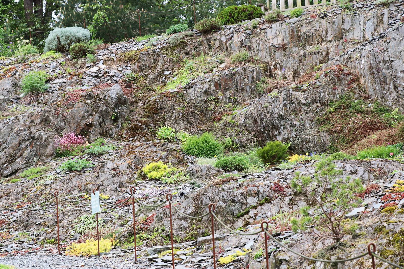 L’immense rocaille installée sur un rocher naturel est reconnue par l’Alpine Garden Society pour sa collection de 245 espèces et variétés plantes alpines. Le jardin est particulièrement impressionnant pendant les floraisons printanières.