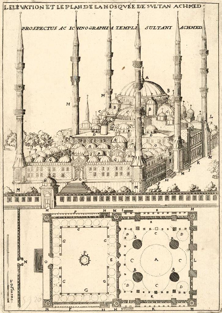 La Mosquée Bleue est l’une des oeuvres les plus importantes du 17e siècle. Ce chef d’oeuvre a été édifié par l’architecte royal Mehmet Aga, disciple de Mimar Sinan, l’un des plus célèbres architectes de l’Empire ottoman. Le commanditaire est le Sultan Ahmet Ier. Monté sur le trône ottoman en 1603 à l’âge de 14 ans, le sultan décéda le 22 novembre 1617. Les travaux durèrent sept ans, entre 1609 et 1616, soit dix siècles après Sainte-Sophie.