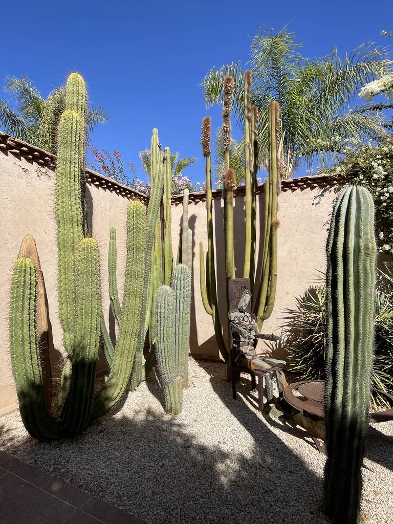 Comme une résistance à la sécheresse et aux changements climatiques, le jardin sec est entouré de hauts murs. Il est peuplé de cactus et de plantes grasses très photogéniques.