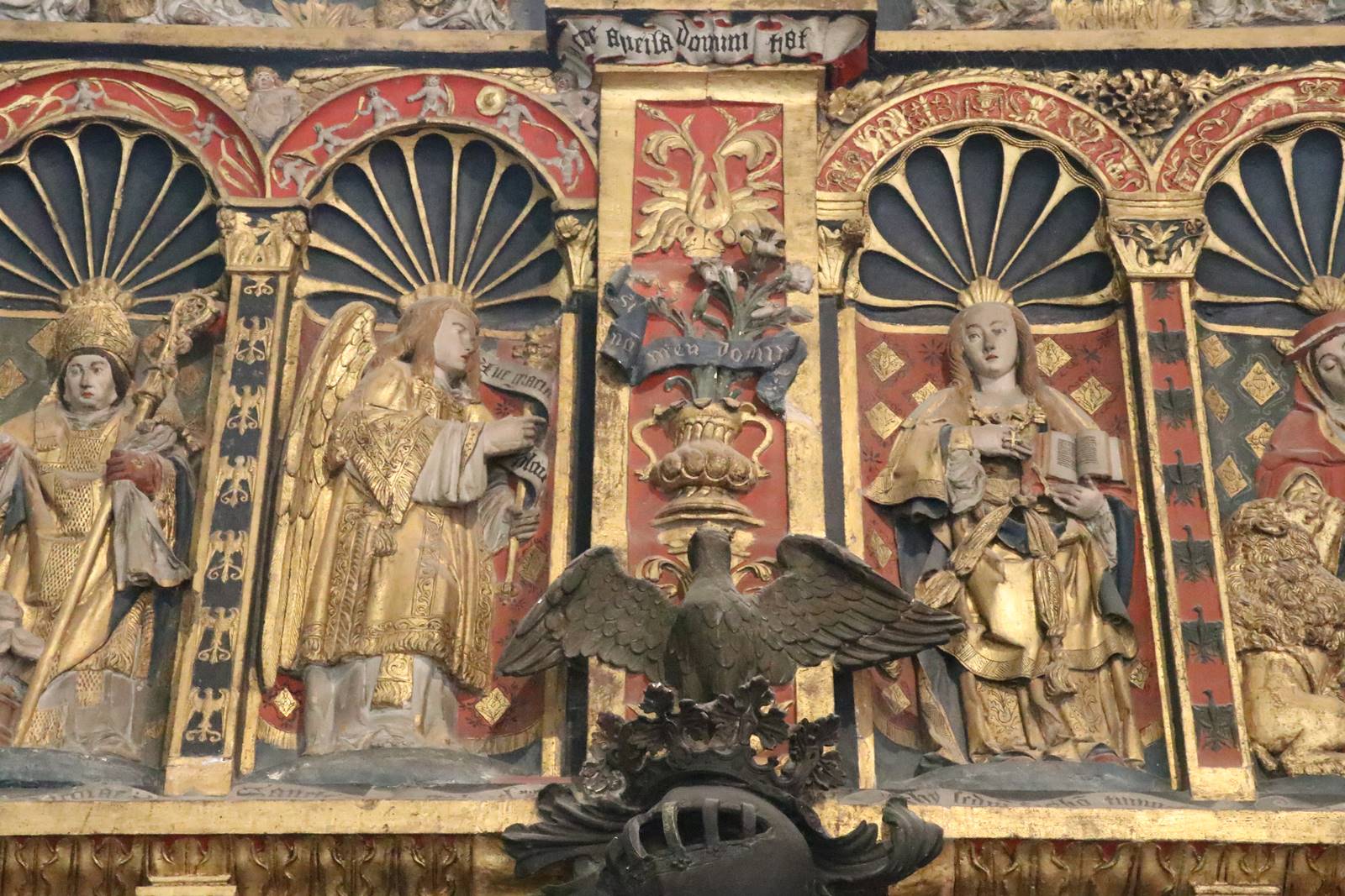 Le monument funéraire du duc René II de lorraine commandé par son épouse Philippe de Gueldre est un ensemble sculpté de style Renaissance intégré au mur de l’église. Composé de niches en coquille, il abrite quatre saints et, au centre, l’angle Gabriel et la Vierge de l’Annonciation. Il visait à rappeler à tous la piété et la gloire du duc René II.