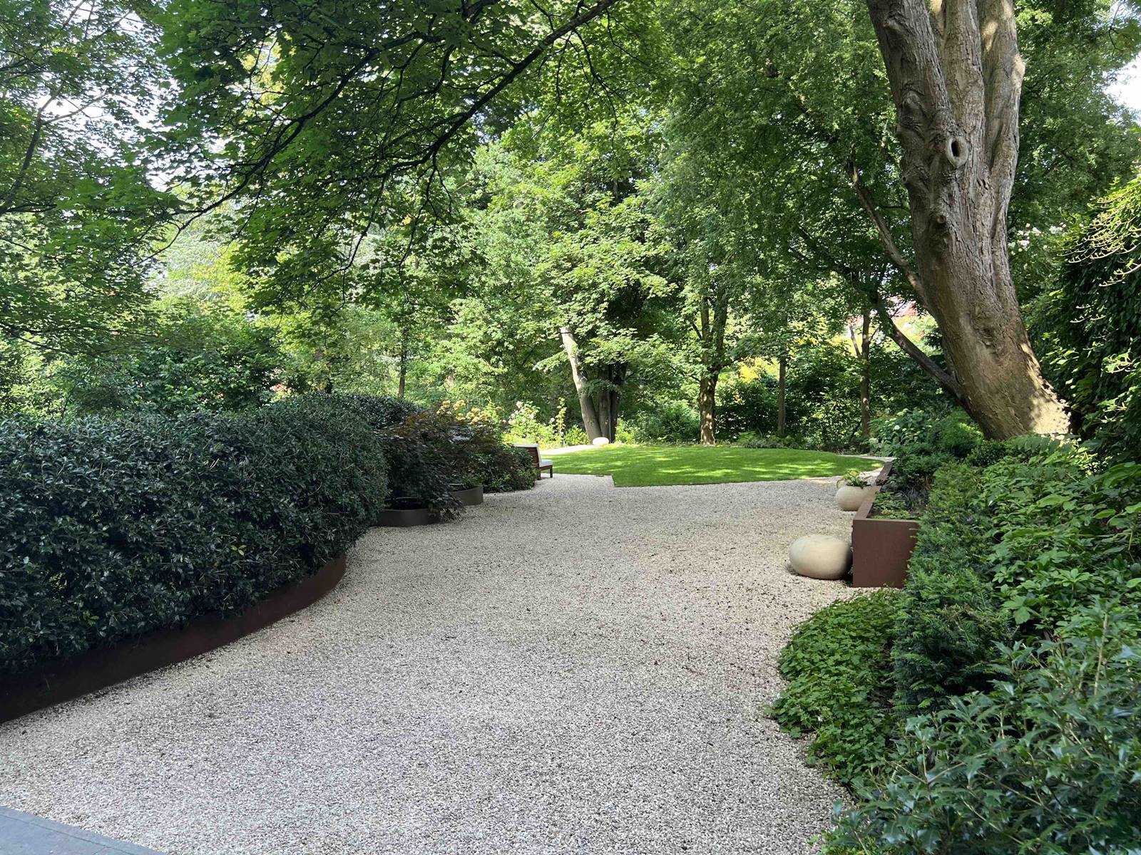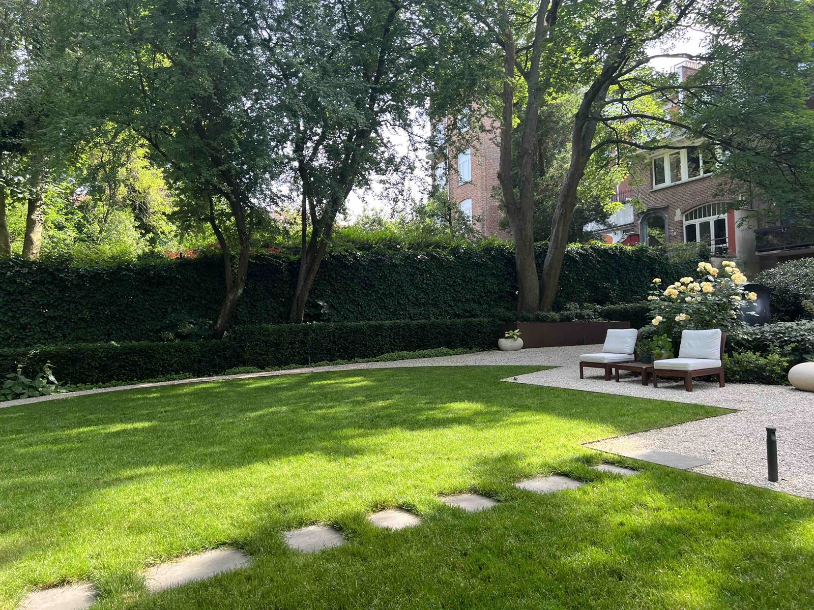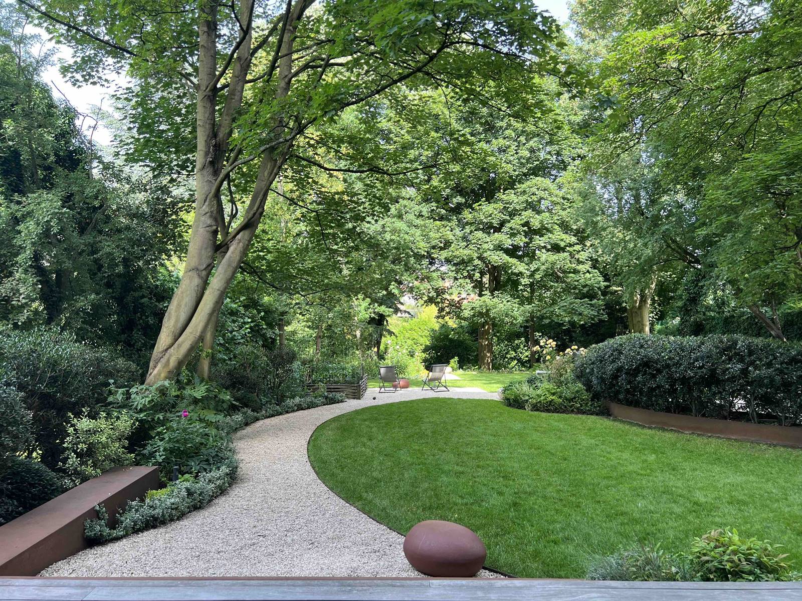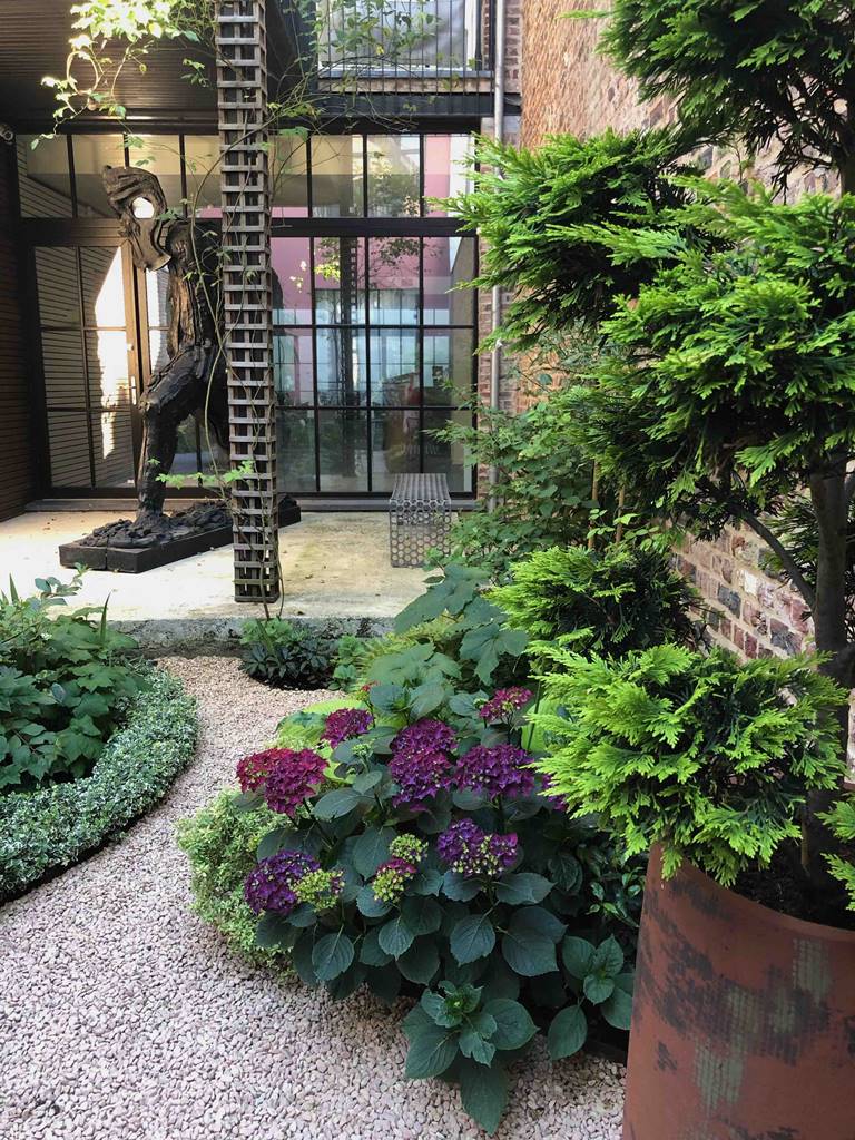 Plus le jardin est petit, plus les détails de plantation et les éléments décoratifs retiennent l’attention de Nathalie. «Un parc va vers le paysage, dans l’extensif. Dans un petit jardin, l’environnement peut être exploité afin de donner l’impression que le jardin se prolonge bien au-delà grâce au jardin du voisin. Les arbres sont taillés en transparence pour donner de la lumière. Pour dilater l’espace et faire oublier les limites du terrain, je crée parfois des diagonales et des arrêts visuels qui sont autant de repères successifs. Ces plans intermédiaires qui compartimentent l’espace entretiennent le mystère et retardent le plaisir d’accéder au reste du jardin pour en profiter pleinement.»