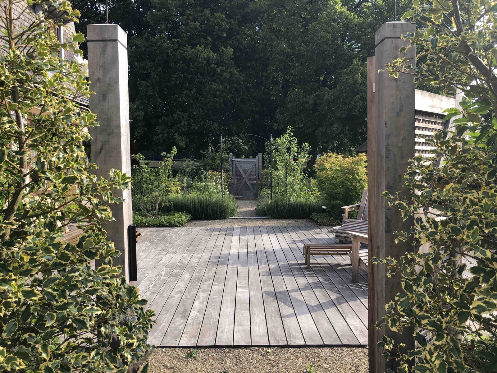 Le fusain au feuillage panaché, Eonymus fortunei ‘Emerald Gaiety’ forme une excellente bordure basse le long d’un massif. «Oubliez le buis. Il y a tant d’autres petits arbustes au feuillage persistant qui peuvent structurer le jardin.» L’Ilex crenata ‘Blondie’ aux feuilles vert clair ou l‘Osmanthus heretophyllus sont utilisés en haie taillée. (voir mon reportage sur l’Ilex crenata)