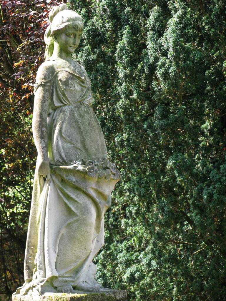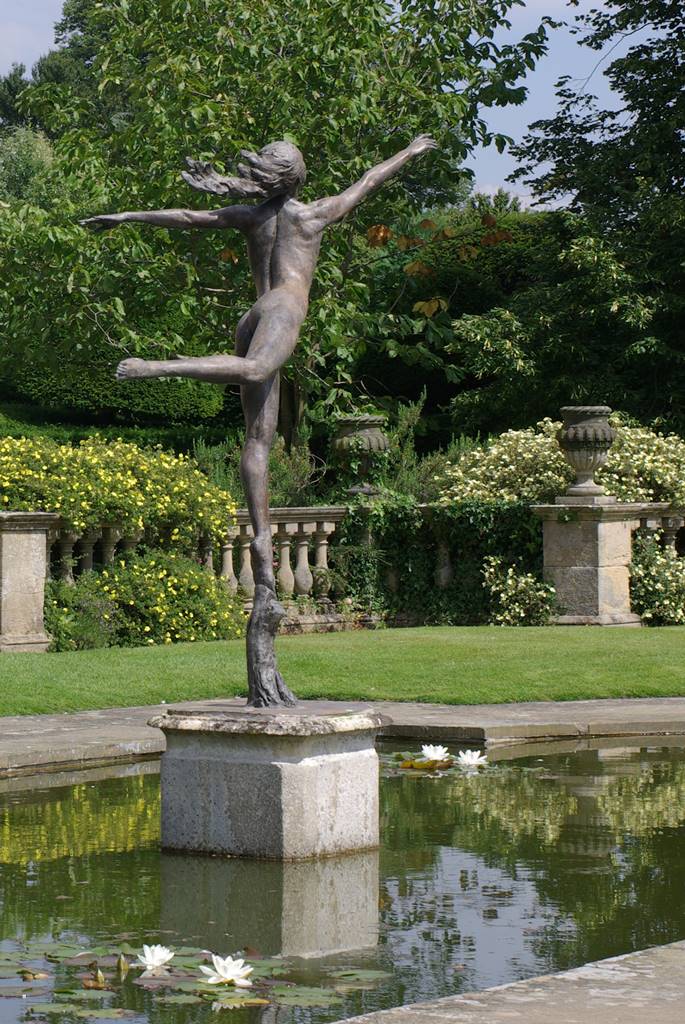 Côté sud, la pièce d’eau aux nénuphars accueille en son centre une statue aérienne ‘Wood Nymph’ de David Williams-Ellis.