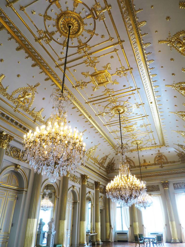 Certaines salles du Palais Royal de Bruxelles ont conservé la décoration de l’époque de la construction. C’est le cas de la Salle Empire, une des plus belles salles du Palais Royal de Bruxelles. A l’époque autrichienne, cette pièce était une salle de bal. Les décorations dorées et les bas-reliefs d’angelots musiciens et danseurs témoignent du style de vie raffiné des milieux aristocratiques à la fin de l’Ancien régime.