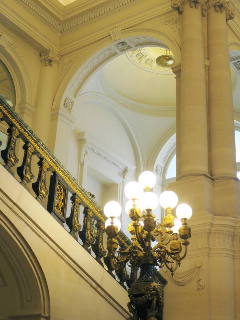 On quitte les salles d’apparat par l’Escalier de Venise qui mène au Porche d’honneur. Les grandes peintures à l’huile sur toile qui recouvrent les murs ont été exécutées par Jean-Baptiste Van Moer au 19e siècle. L’escalier est éclairé par un superbe lustre en verre soufflé de Murano.