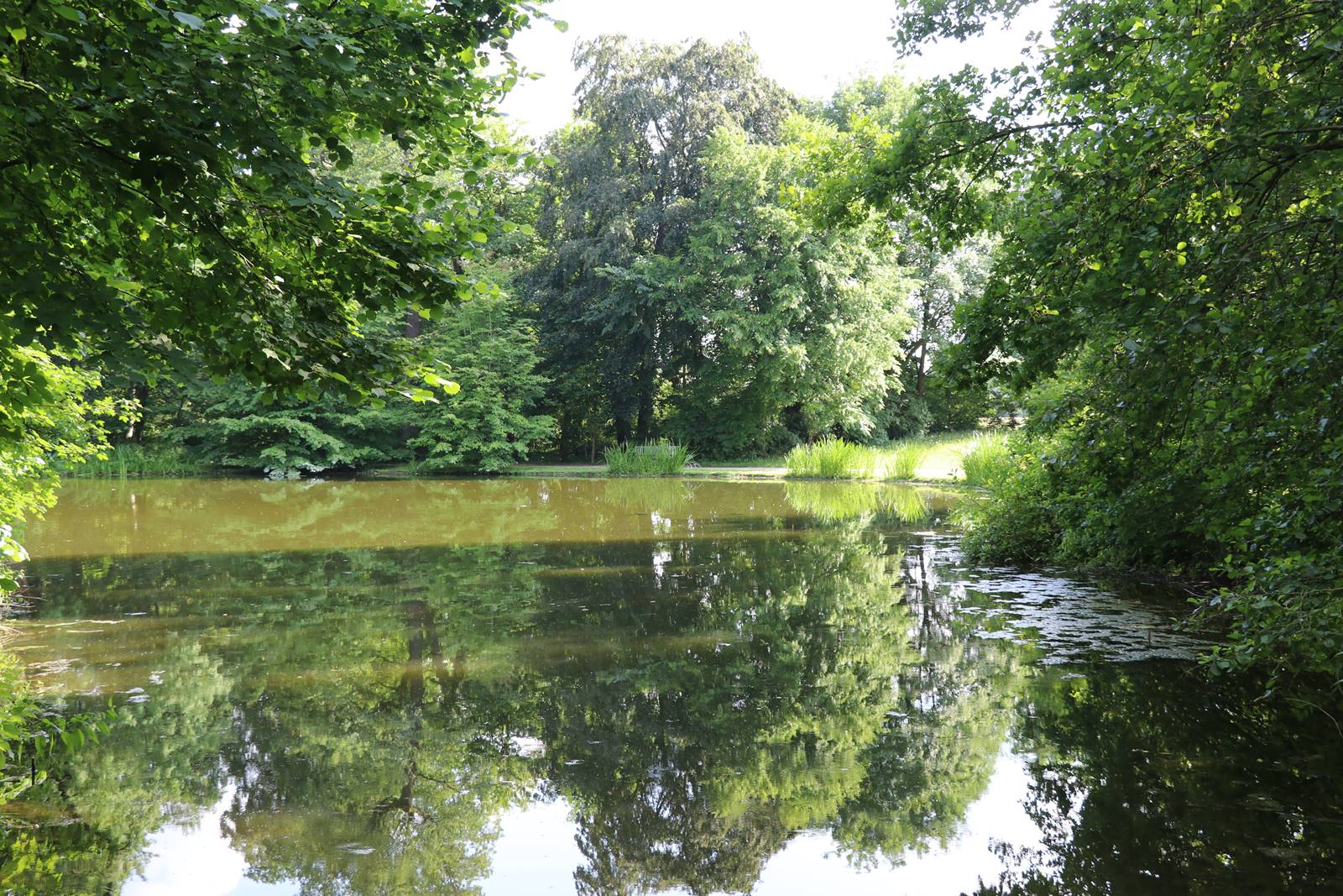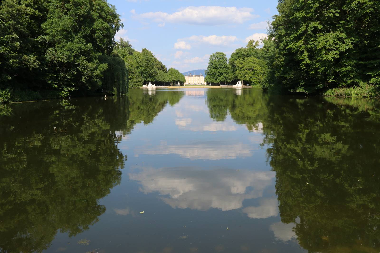 Clôturant les jardins à l’Ouest, le Grand Etang fut implanté vers 1775 sous la forme d’un grand bassin rectangulaire qui s’étire sur toute la largeur du domaine. Il était encadré par des statues représentant les dieux Rhin et Danube placées en bordure du bassin. Vers 1824, Johann Michael Zeyher convertit ce bassin formel en un étang aux contours sinueux.