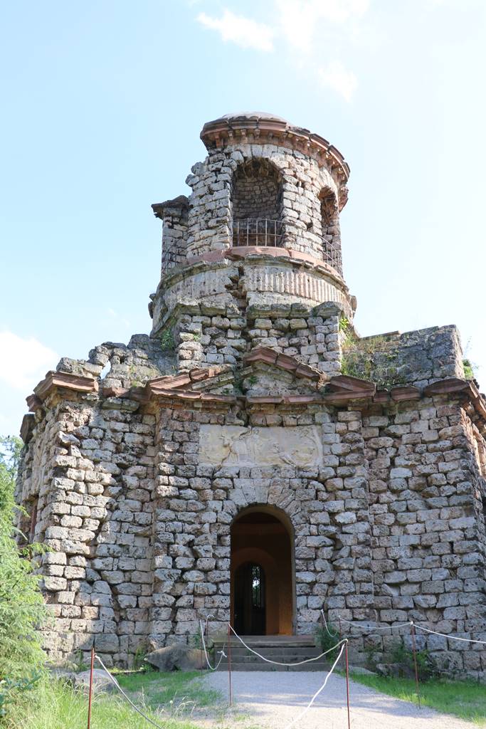 Construit sur une colline, le Temple de Mercure est bâti d’emblée en tant que ruines suggérant un édifice effondré. C’est un belvédère à trois étages qui offre une vue sur l’étang de la mosquée ainsi que sur le paysage environnant.
