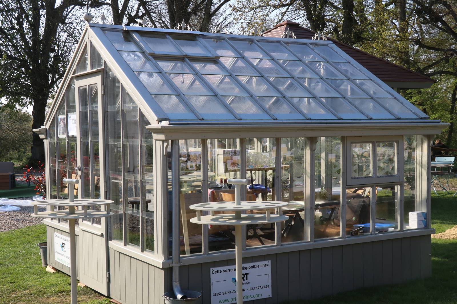 C’est une serre à l’ancienne que j’ai photographiée à la Fête des plantes de St Jean de Beauregard en avril 2019 sur le stand de Jardin d’Antan.