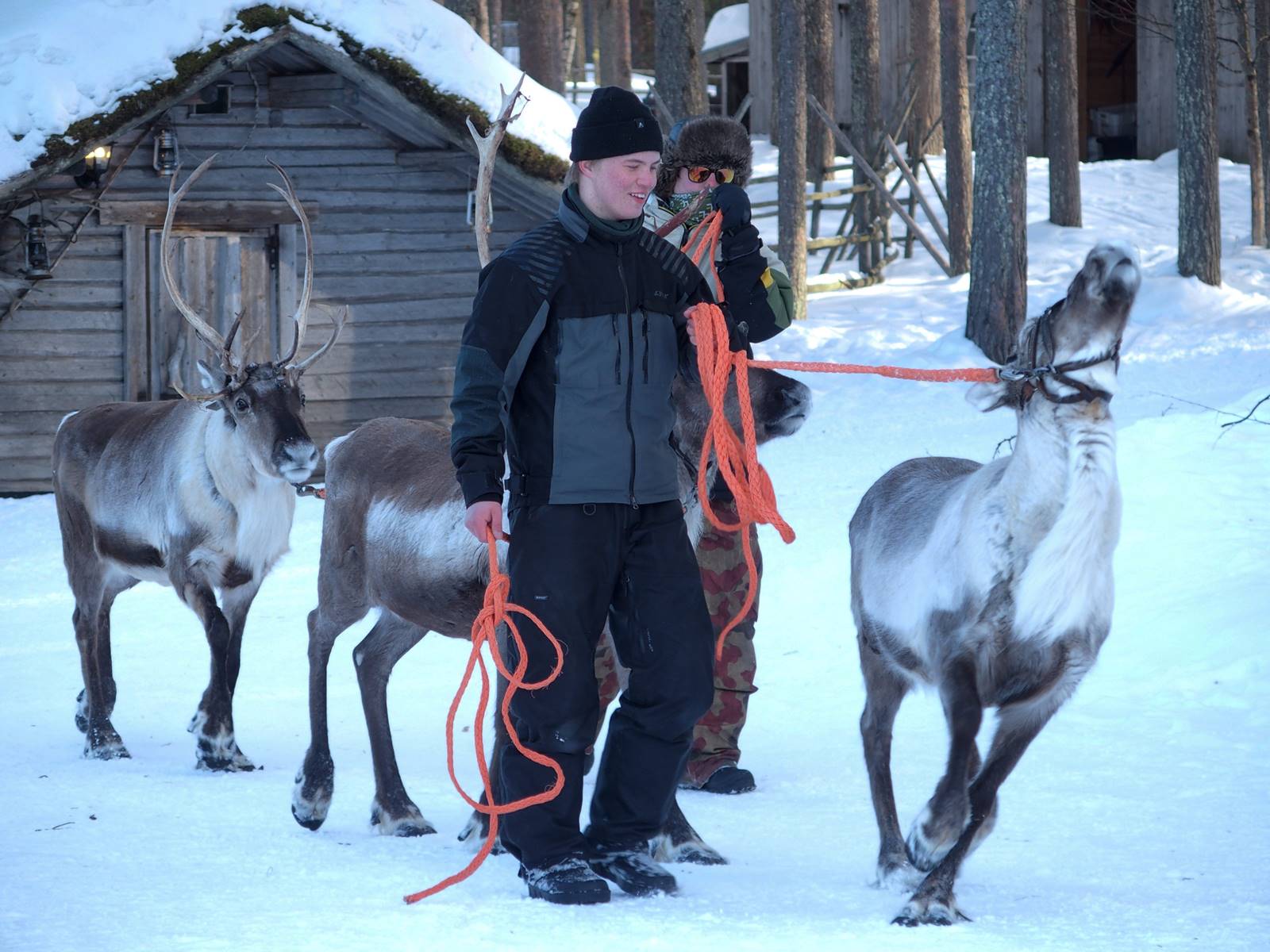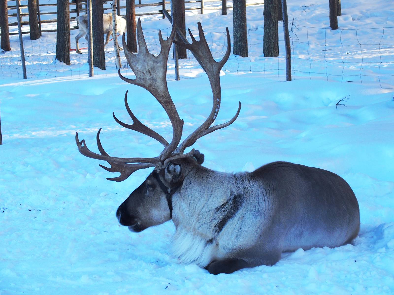 Lors de la visite de la ferme SieriPoro, on découvre le mode de vie du renne, Rangifer tarandus tarangus. Le bois qui tombe une fois par an repousse très vite, jusqu’à 2cm par jour. Le renne est la seule espèce dont les femelles portent aussi des bois. Le renne mâle laisse tomber ses bois après la fin de la saison du rut et la femelle, après le vêlage au printemps.