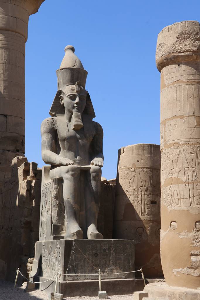 Le temple de Louxor est un des plus spectaculaires temples d’Egypte. Il ne servait qu’une fois l’an lorsque le dieu Amon quittait solennellement son sanctuaire principal. Il rassemble une série de cours et de salles qui se succèdent depuis l’entrée principale jusqu’au sanctuaire. Le pylône d’entrée est flanqué de colosses et d’un obélisque édifiés à la gloire de Ramsès II. Offert par l’Egypte à la France au 19e siècle, le second obélisque est érigé sur la place de la Concorde à Paris. (voir mon reportage sur Ramsès II et l’or des pharaons)