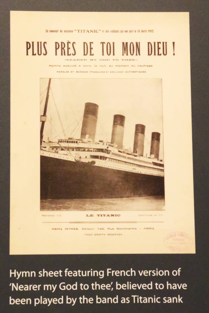 Durant la première heure du naufrage, de nombreux passagers pensent qu’il s’agit d’un exercice d’évacuation et refusent de monter dans les canots qui partent presque à vide. Ensuite c’est la panique! La poupe se soulève tandis que l’avant du navire s’enfonce lentement dans l’océan. Il reste encore beaucoup de personnes à bord. Réunis dans les salons des premières classes, les musiciens des deux orchestres jouent pour maintenir le moral des passagers. Leur dernier morceau fut peut être ‘Nearer my God to thee’, ‘Plus près de Toi, mon Dieu’.
