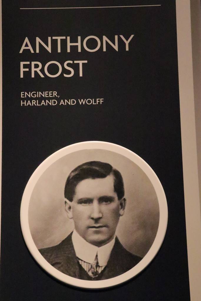 Anthony Frost, ingénieur Harland & Wolf, disparut avec le Titanic. Sa veuve fut soutenue par la compagnie pour l’éducation de ses quatre enfants.