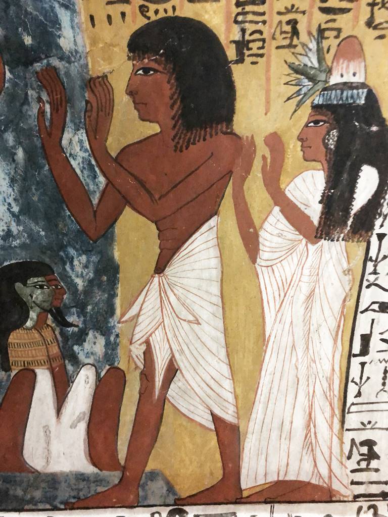 Dans une tombe, le défunt se fait représenter fauchant le blé dans les champs bien-heureux de l’au-delà tandis que sa femme est en train de glaner. La terre arable était un éden pour l’ouvrier qui passait probablement toute sa vie au milieu des pierres brûlées par le soleil de la Vallée des Rois ou dans les sombres galeries souterraines des nécropoles.