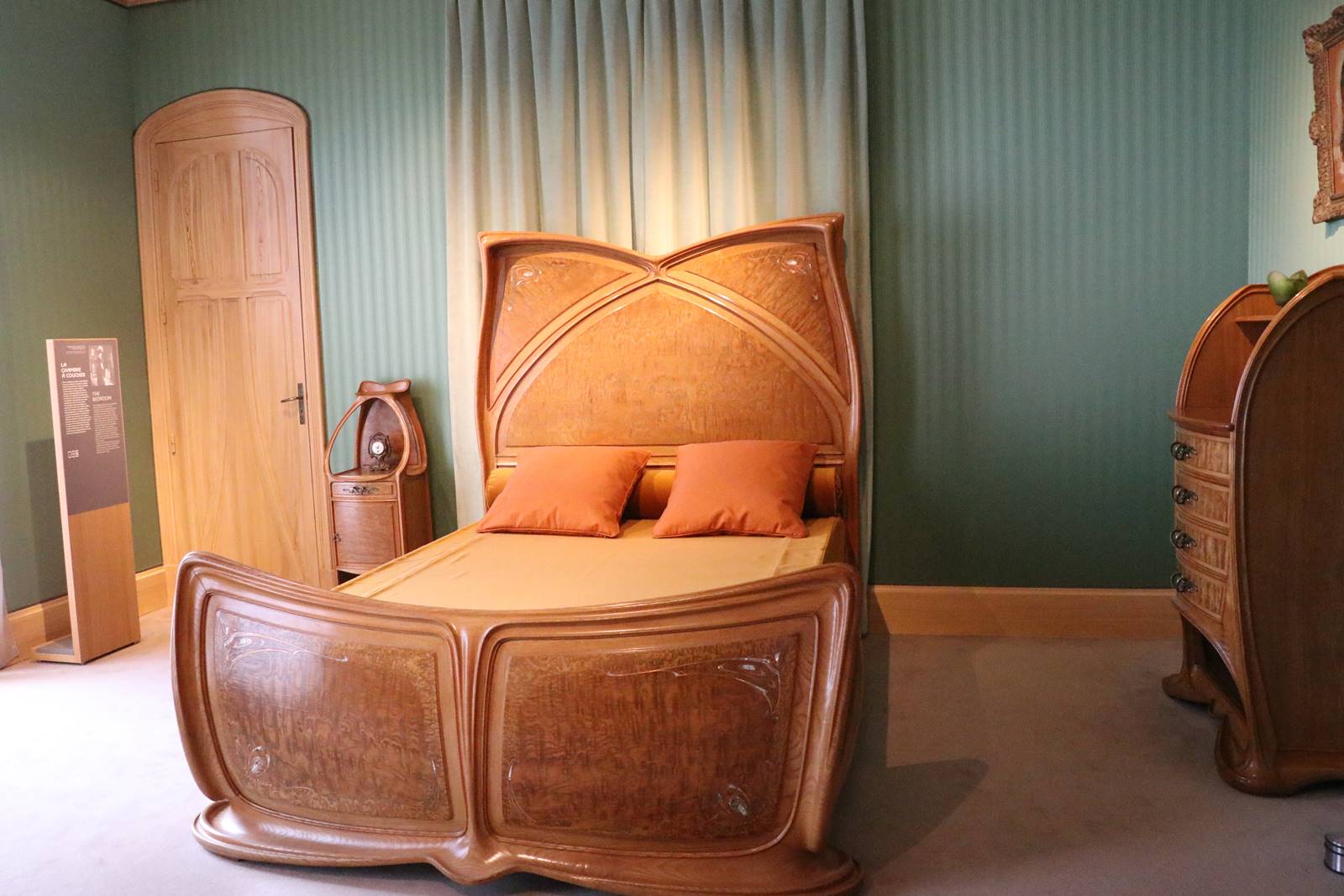 Louis Majorelle a conçu pour sa chambre à coucher un mobilier d’exception composé d’un lit, d’une armoire, de deux commodes et d’une table de chevet. Cet ensemble unique n’a jamais été reproduit.