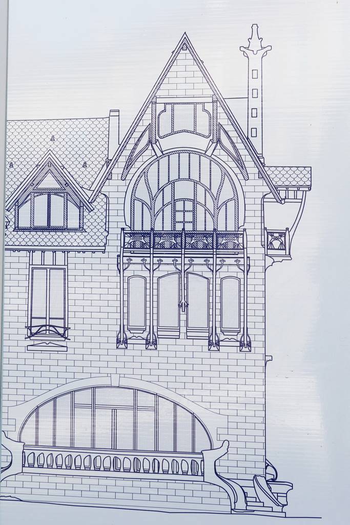 La masse imposante de la maison est animée par de nombreux éléments décoratifs, carreaux en céramique, ferronneries et par des ouvertures de formes variées. Le grès flammé est à la mode dans les années 1900. On le trouve ici sous forme de carreaux, de frises, de couronnements de cheminées et surtout dans l’imposante rampe de la terrasse à décor végétal réalisée par le céramiste Alexandre Bigot d’après un dessin d’Henri Sauvage. Le céramiste est également l’auteur d’un panneau décoratif sur le thème de la lentille d’eau dans de délicats tons bleutés sur le mur intérieur de la véranda.